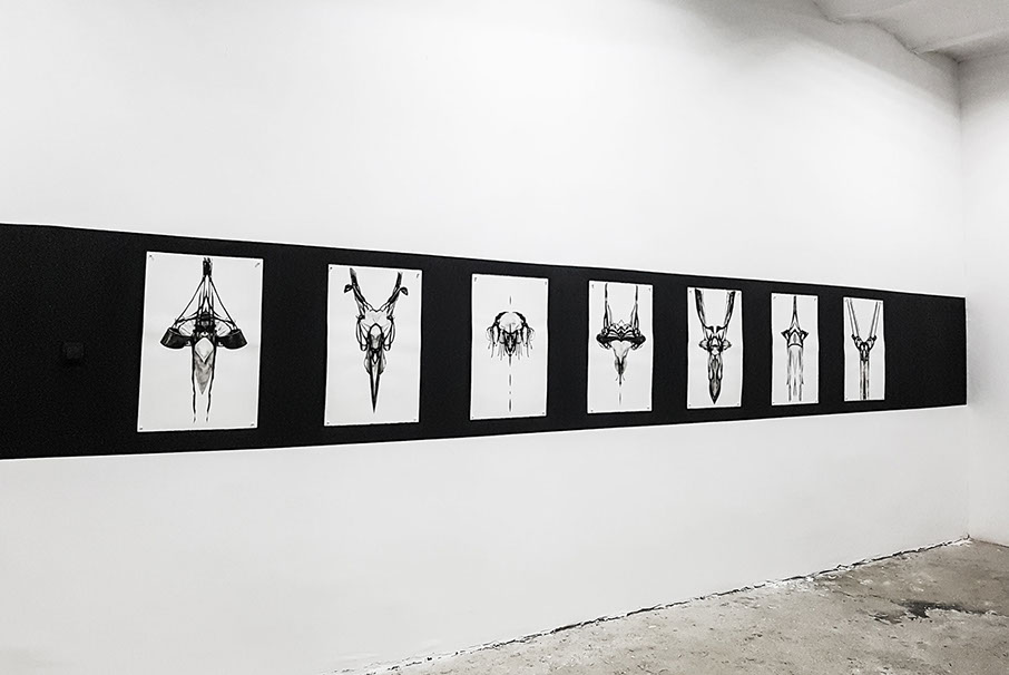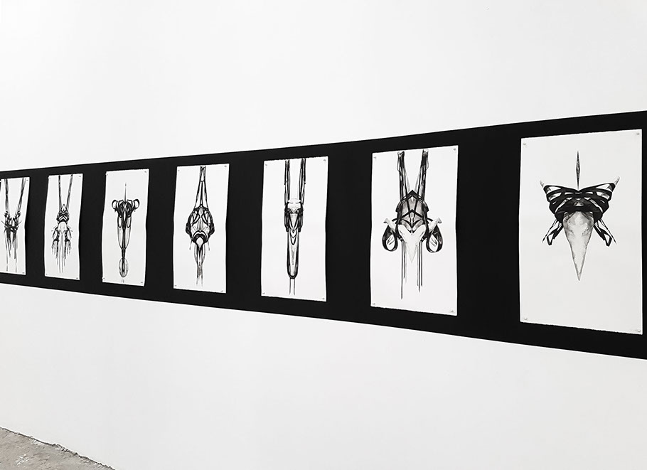 BOUND - ANIMA INVERTED, 2017, Pigmented ink drawings on 300gsm paper, 77cm x 50cm each
