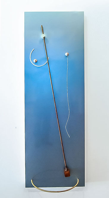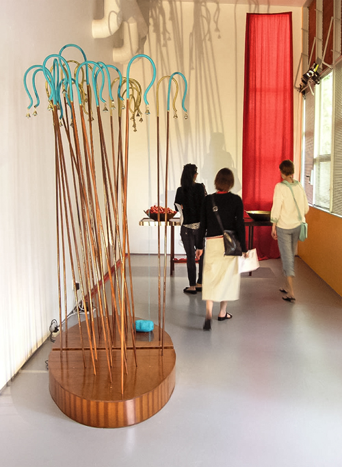 "The element of wit also appears in this show, as when a dribble of white thread complete with drops gives point to Fata’s Milk. All these assemblages are appealing but movement makes Nomadic Wonders outstanding. A group of tall, red shepherds, crooks bound at the top, are adorned with bells. A hidden mechanism shakes them to produce a lilting sound across the meadows of the mind.”